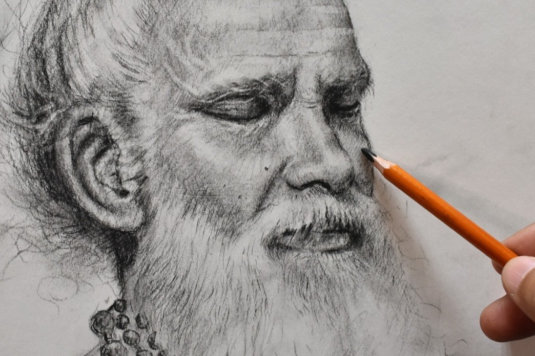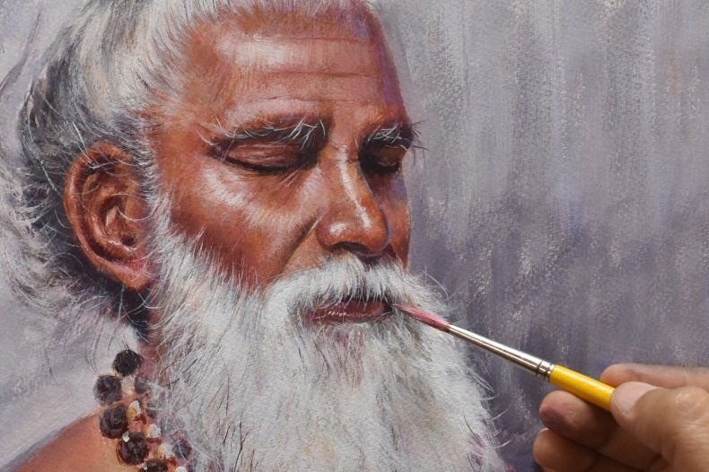 Learn how to paint realistic beard and hair texture with acrylic on paper. Unlock the secret of painting hair and life like skin tone on paper without using any special medium or retarder.
