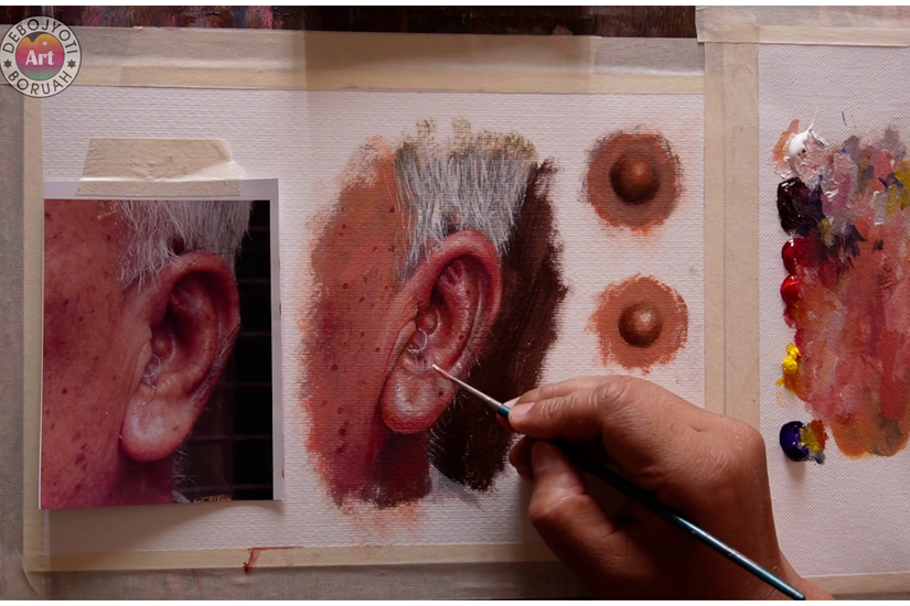Learn my unique method of color mixing for skin tone and understand the beauty of blending with acrylic with just water as a medium. Techniques shown here is helpful for beginners as well.