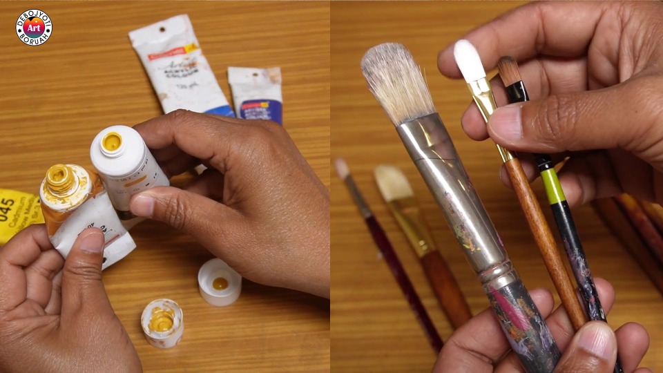Explaining the use of each material that I use for my acrylic painting process, starting from brushes, colors, surfaces, and other essential tools as well.