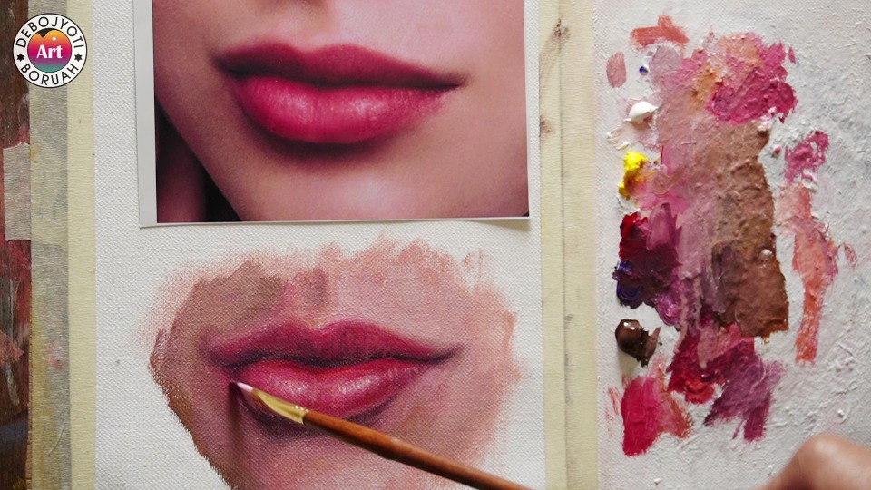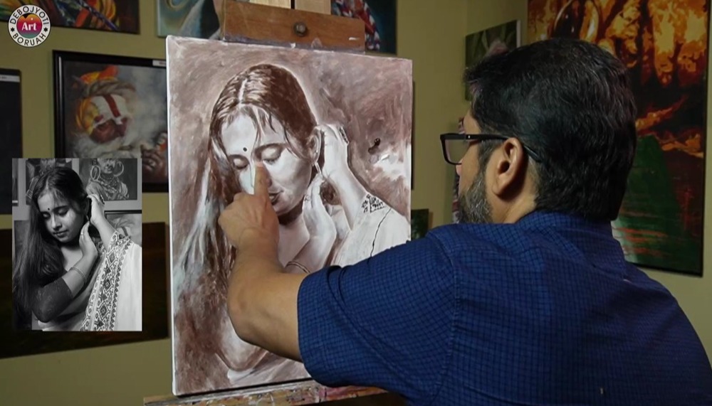 Understanding the importance of monochrome underpainting in portrait painting with side by comparison and explaining brush strokes for a smoother result.