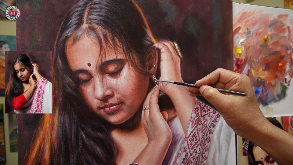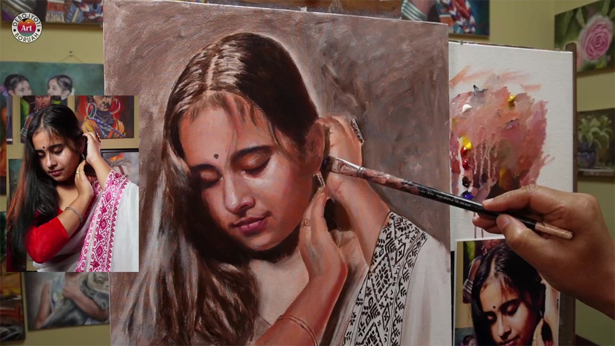 Learn my unique method of color mixing for skin tone and understand the beauty of blending with acrylic with just water as a medium. Techniques shown here is helpful for beginners as well.