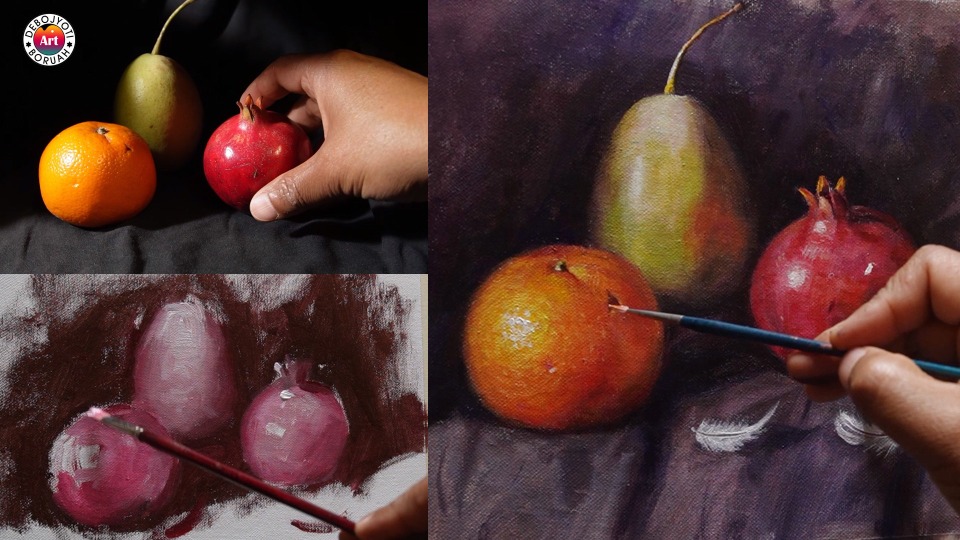 Learn to paint a Still-life from setting up composition to painting in real-time. Sharing my easiest technique to achieve different surface textures with acrylic even if you are new to this medium.